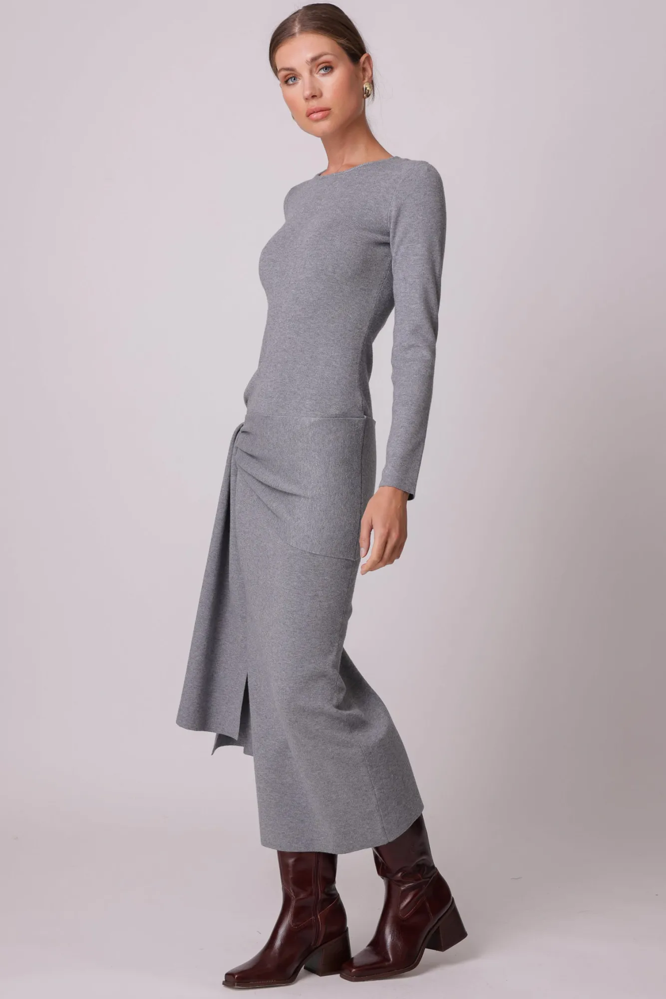 – Knit sweater- Long sleeves- Round neckline- Wide self tie along the Hip- Pull over design, no closure