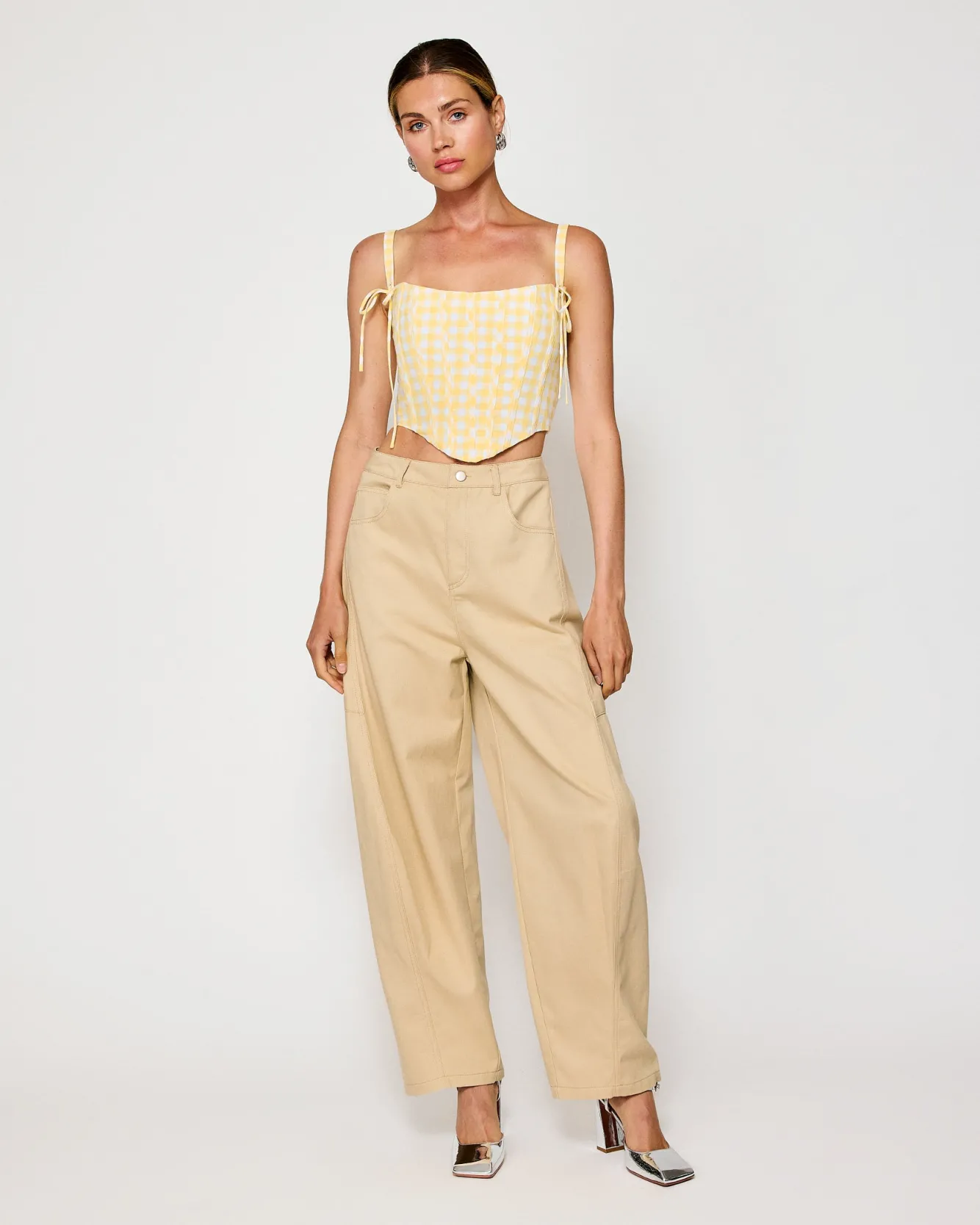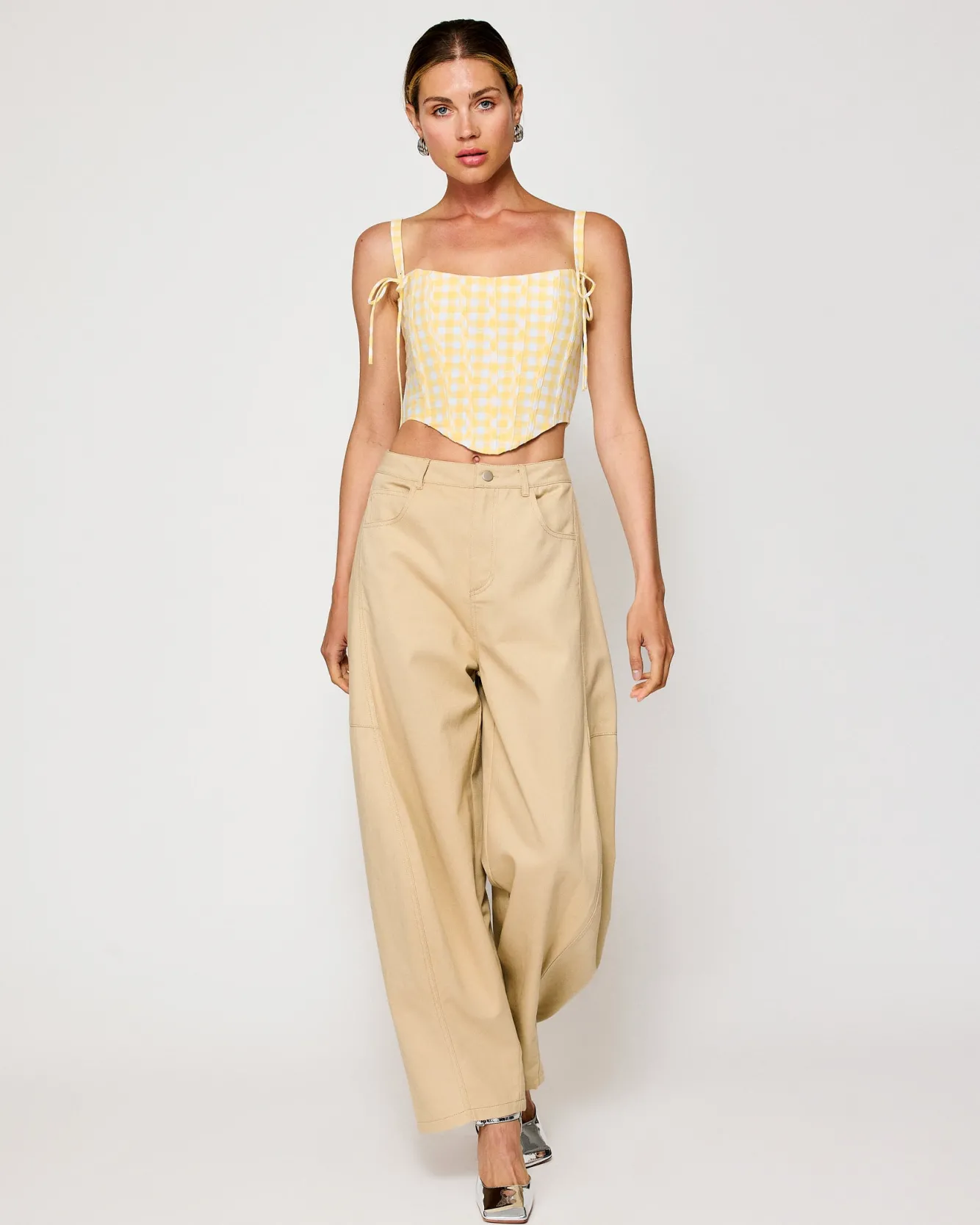 – Lightweight, textured fabric- Gingham checked print- Corset design- Self spaghetti tie details- Hook-and-eye and back …