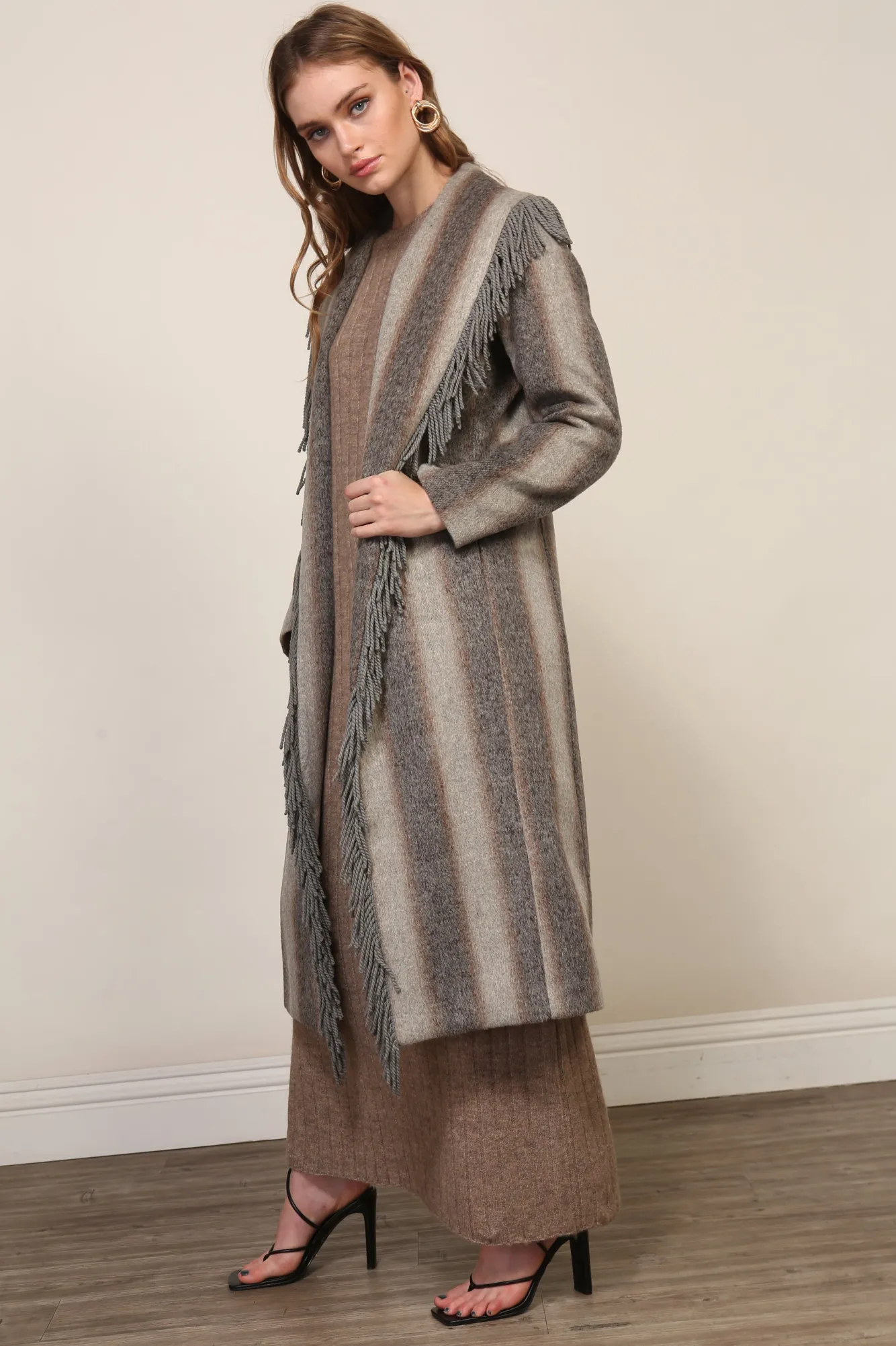 Line & Dot LINDA FRINGE COAT WITH GRADIRNT STRIPE- Outerwear