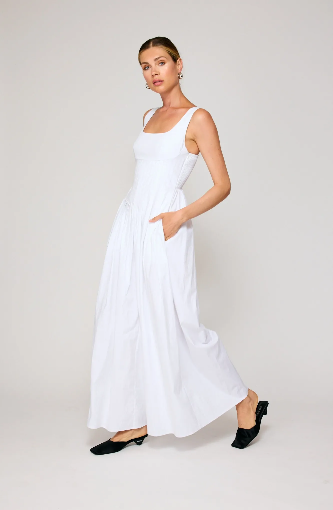 – Light-weight poplin with stretch- Scooped neckline- Sleeveless- Pleated detail