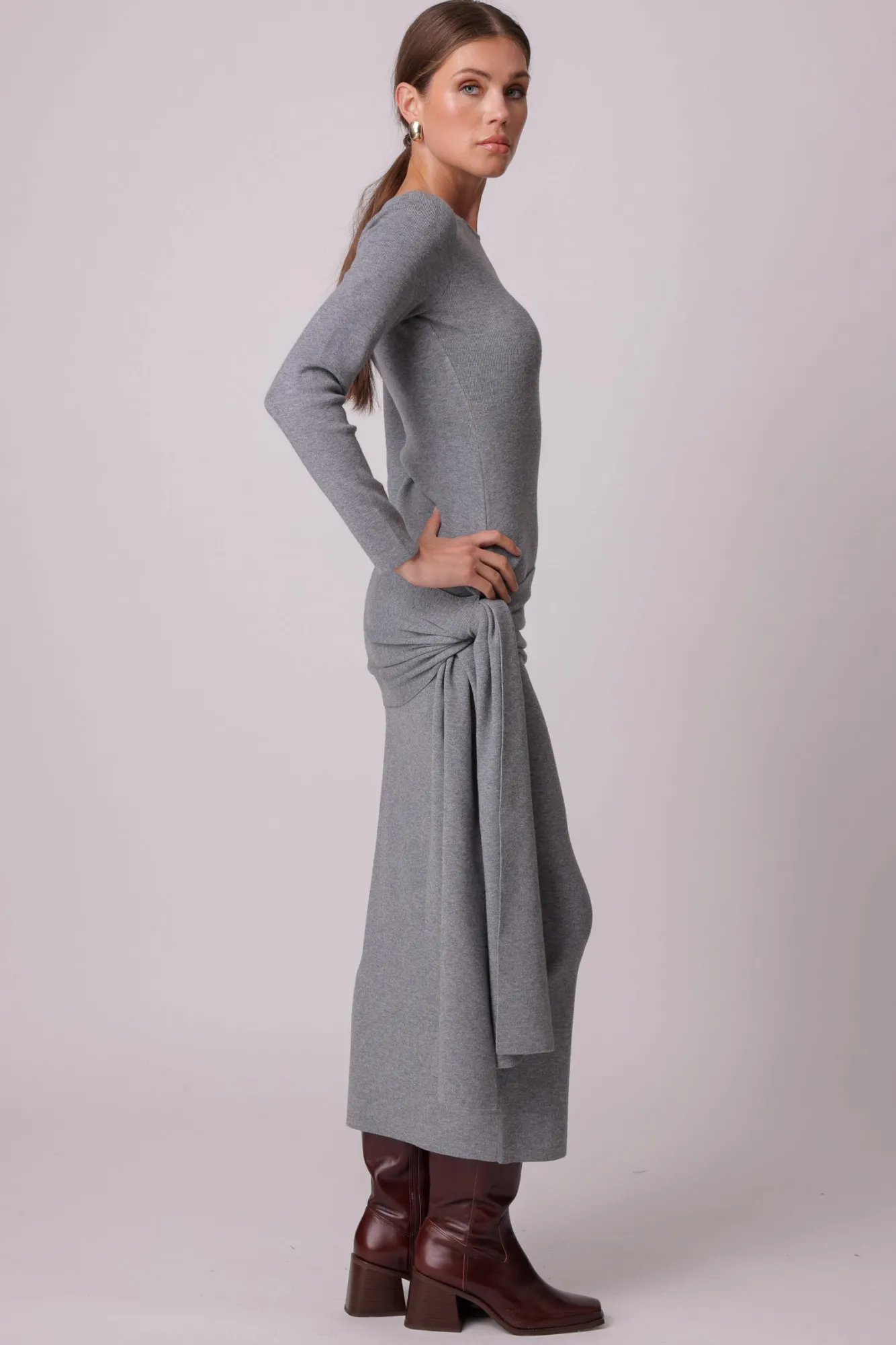 – Knit sweater- Long sleeves- Round neckline- Wide self tie along the Hip- Pull over design, no closure