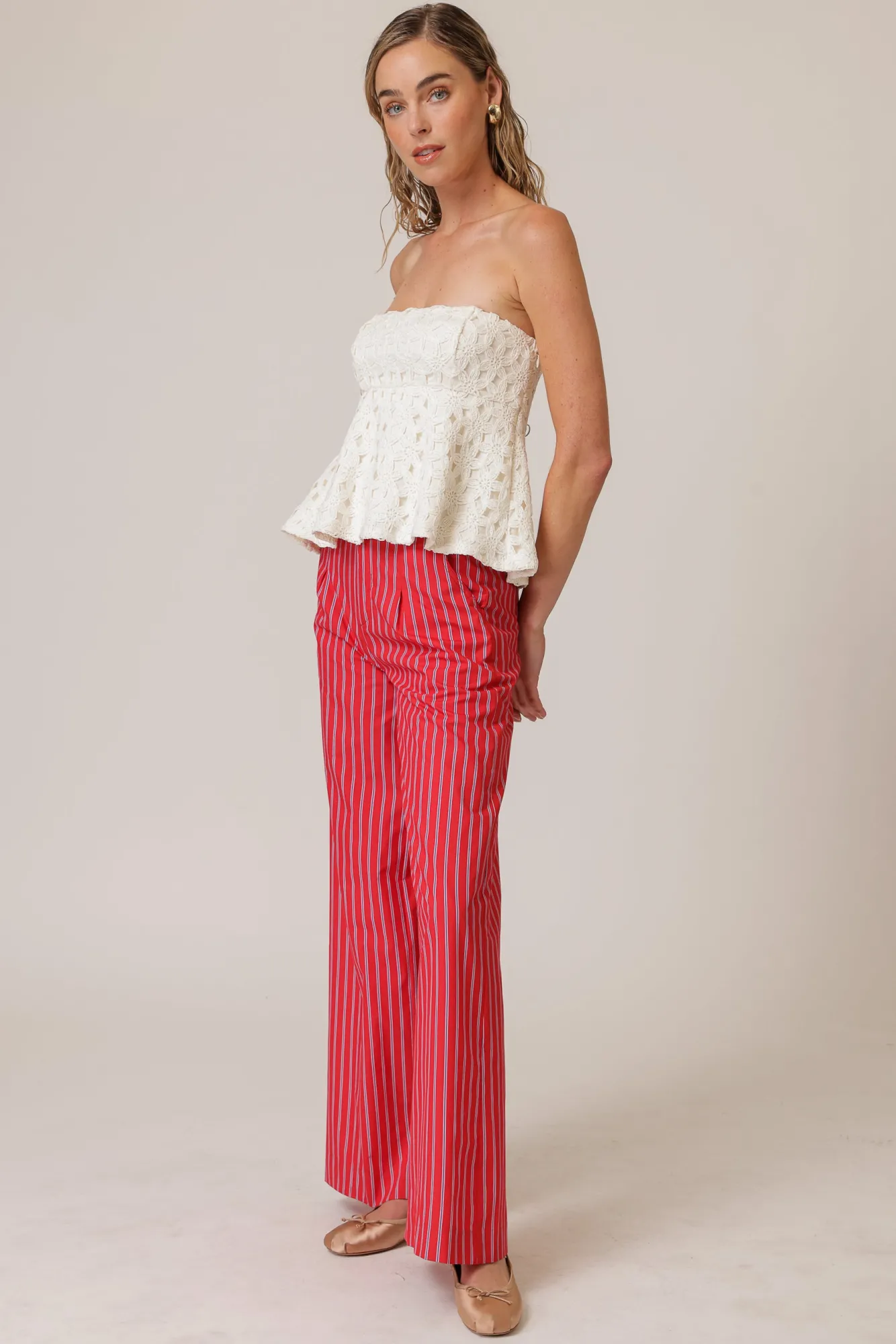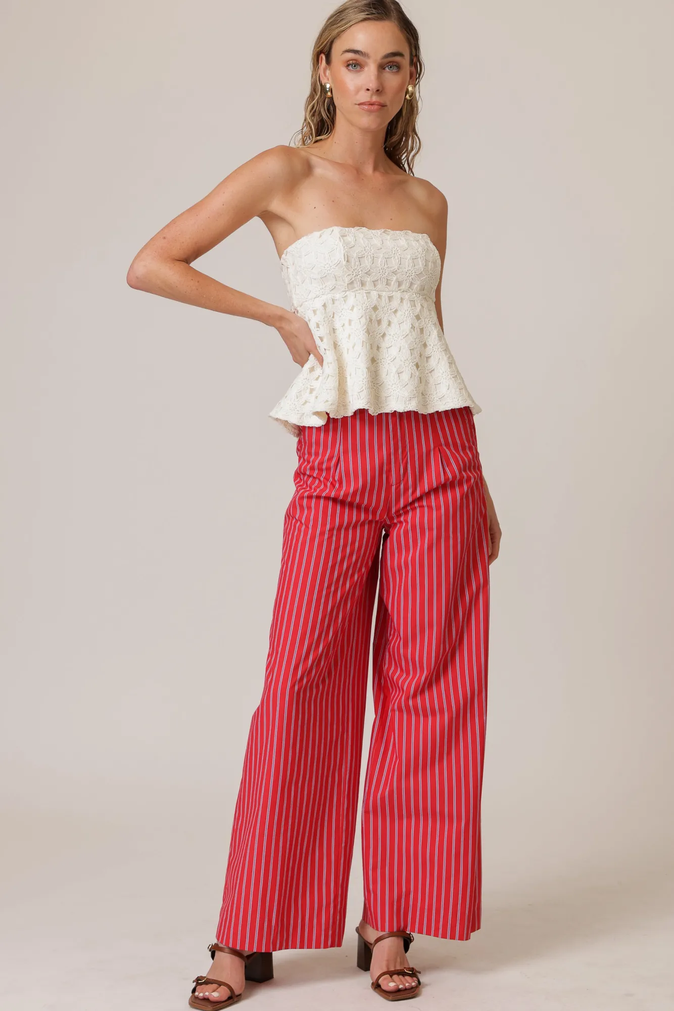 – Lightweight, non-stretch crochet fabric-Sleeveless- Strapless- Peplum design- Fully linedModel measurements:Size SThe …