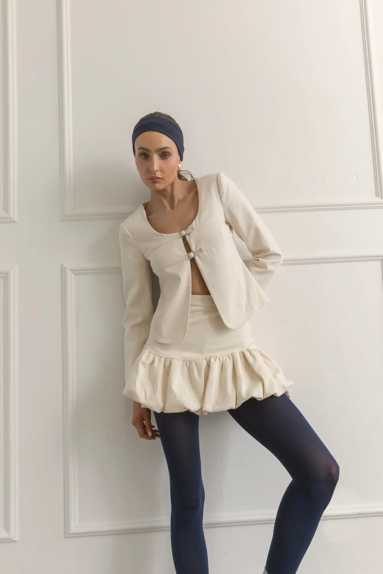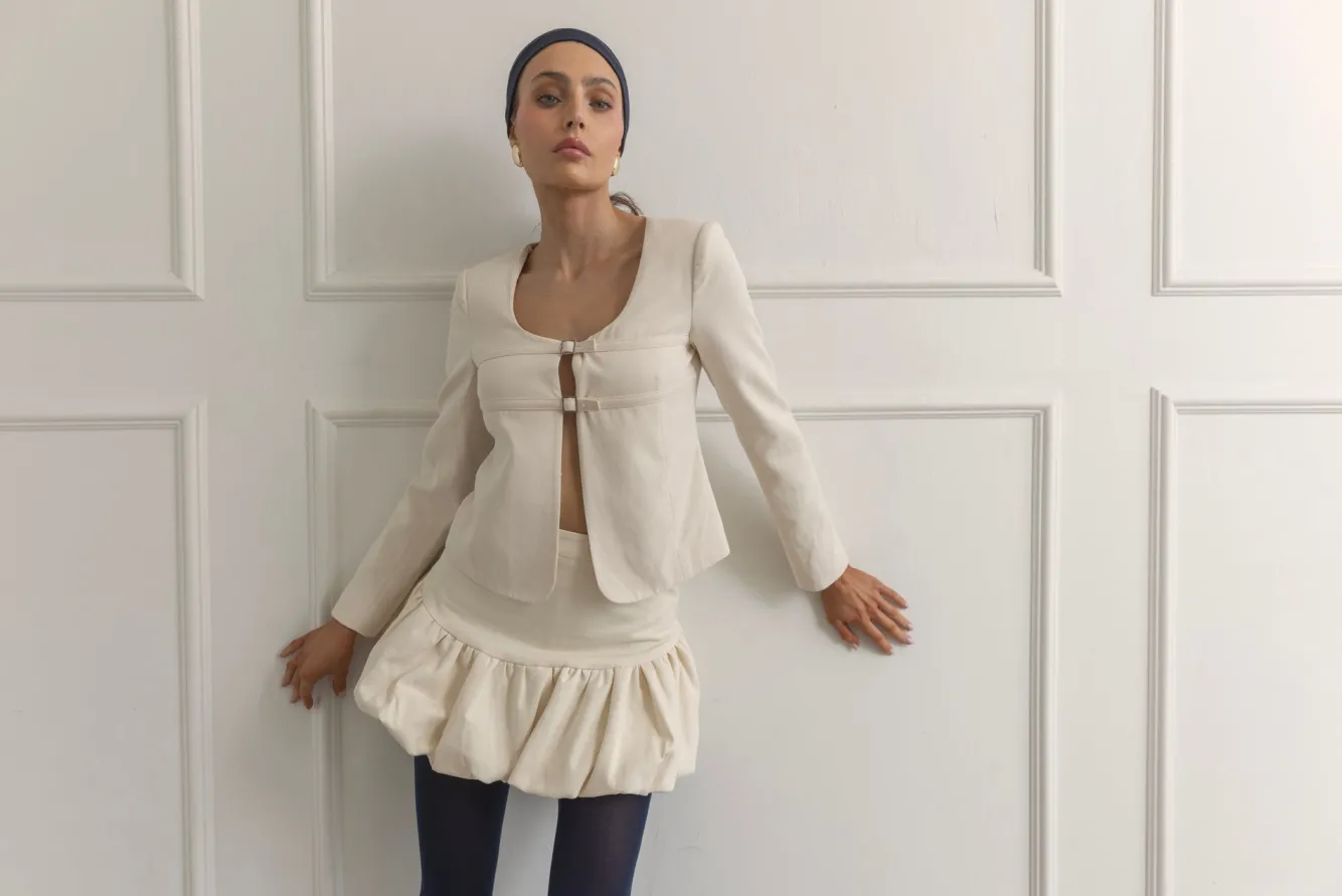– Heavyweight cotton twill- Bubble hem- Hook-and-eye and hidden side zip- Fully lined