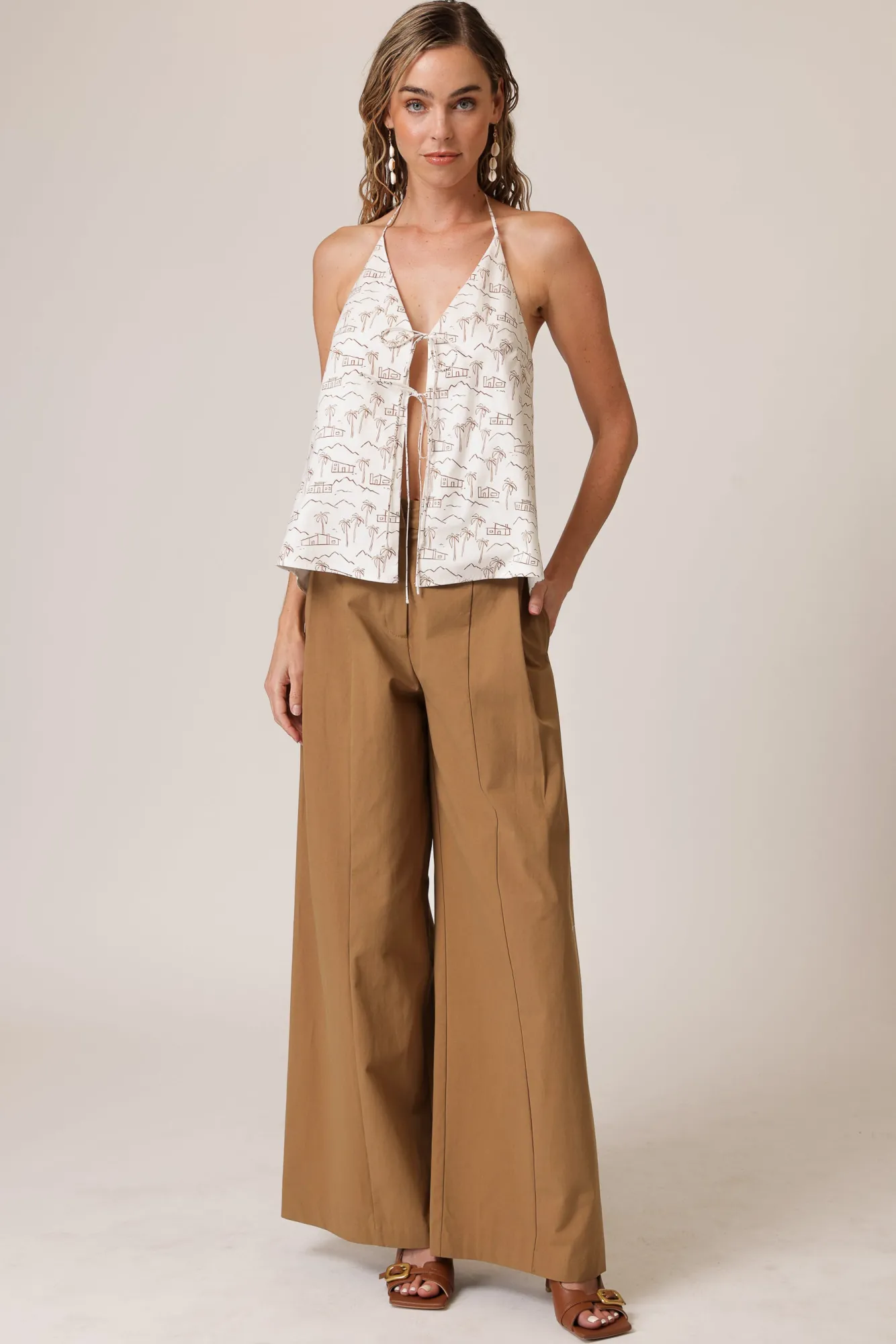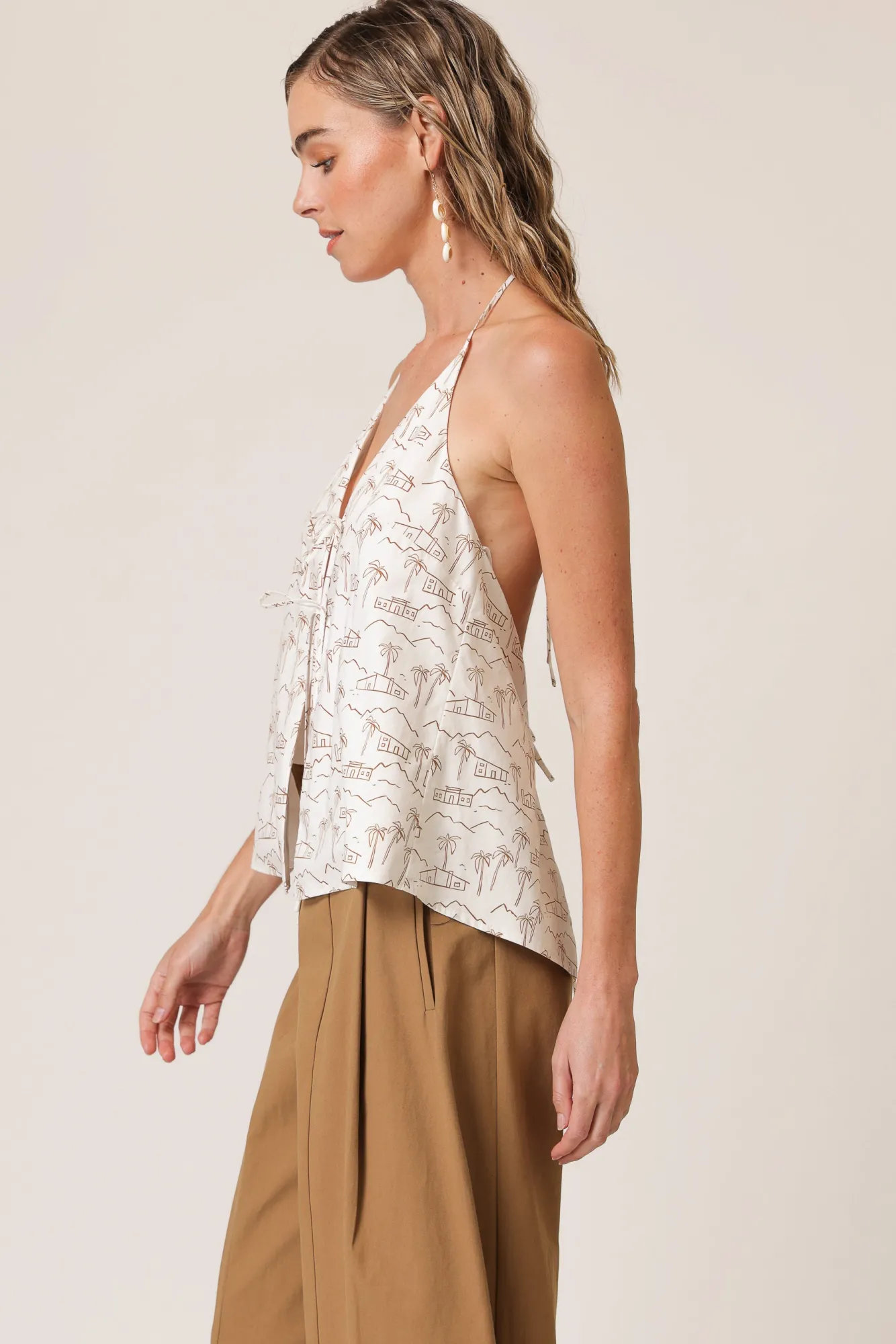 – Lightweight, non-stretch poplin print- Adjustable halter strap – Front tie- Sleeveless- Tie fastening at back- LinedMo…