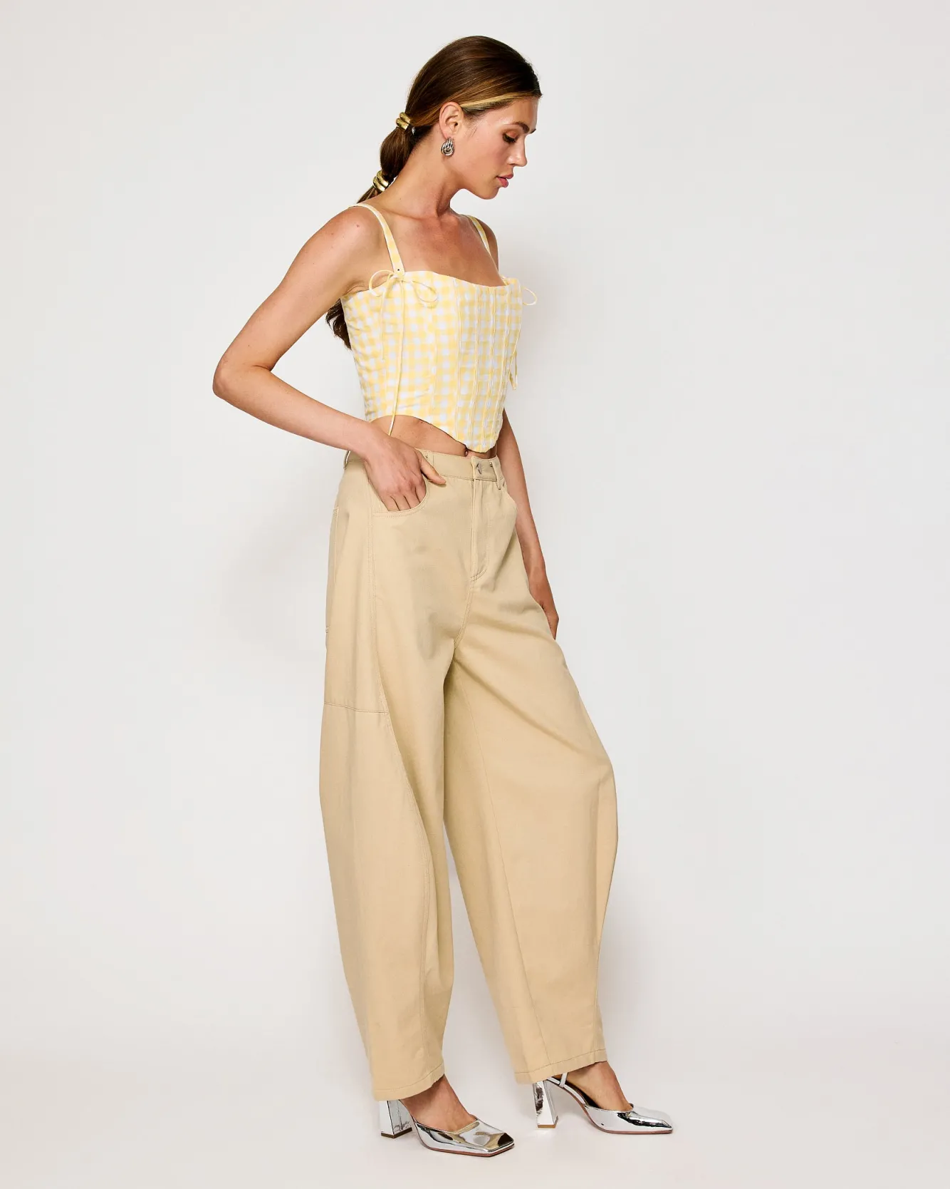– Lightweight, textured fabric- Gingham checked print- Corset design- Self spaghetti tie details- Hook-and-eye and back …