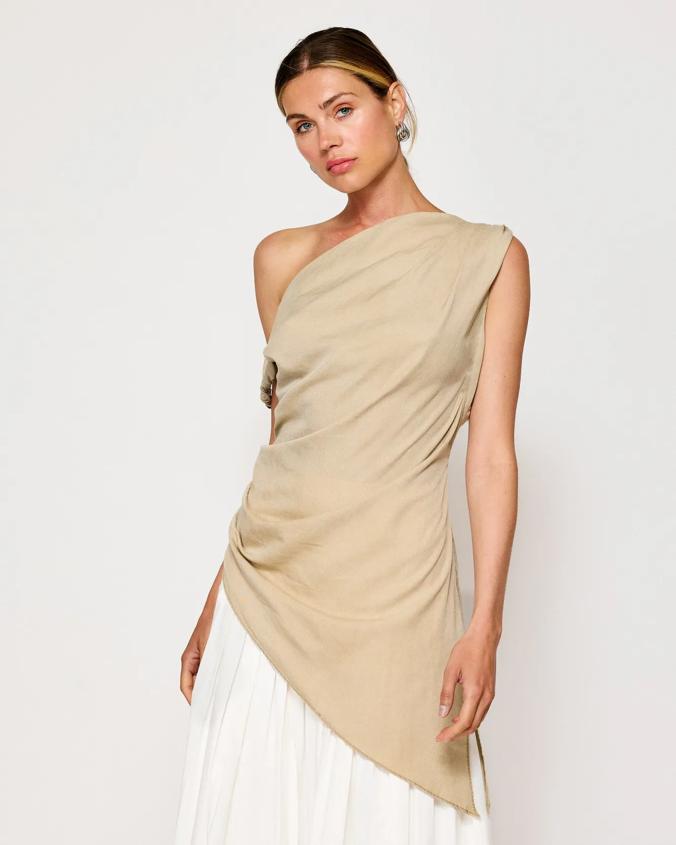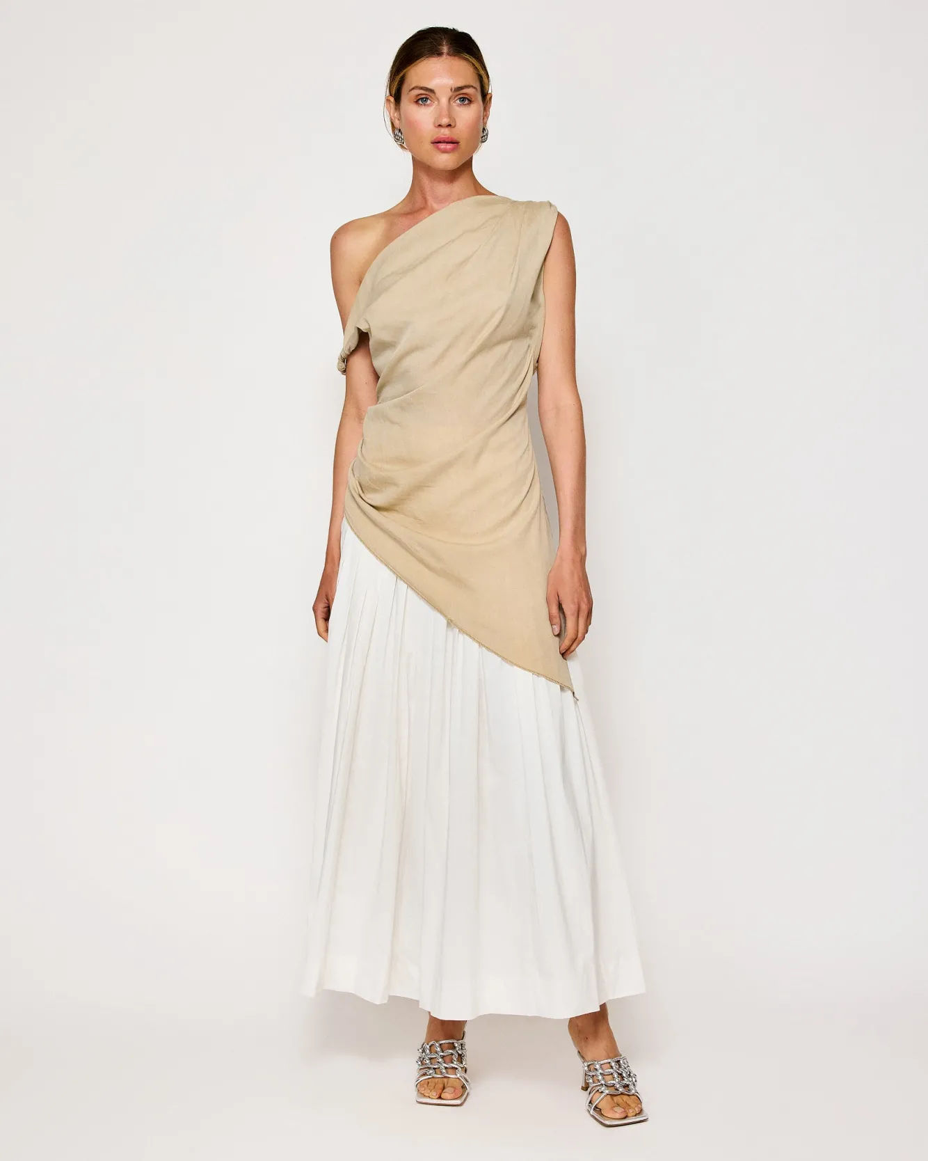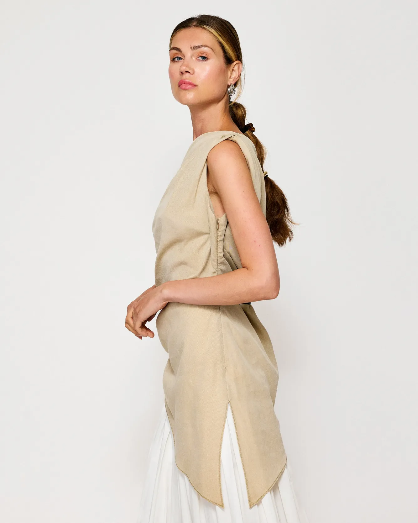 – Lightweight woven fabric- Asymmetrical neckline and hemline- Sleeveless- Hook-and-eye and hidden side zip- LinedModel …